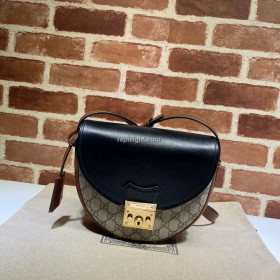 GUCCI-644524 9785 구찌 패들락 블랙 가죽 GG 수프림 캔버스 스몰 숄더백
