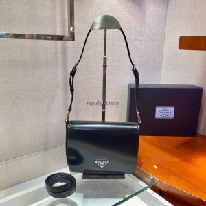 • PRADA-1BD308 프라다 블랙 브러시드 가죽 숄더 백