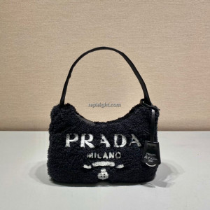 • PRADA-1NE515 프라다 블랙 시어링 테리 호보백