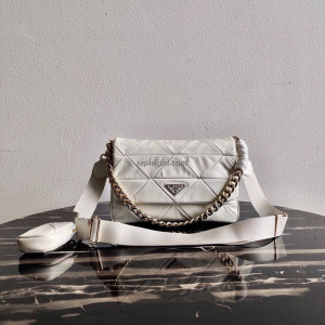 • PRADA-1BD306 프라다 화이트 나파 가죽 패딩 숄더백