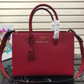 PRADA-1BA153 프라다 레드 사피아노 가죽 라지 탑핸들백
