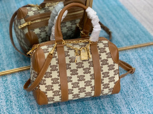 • CELINE-193652 셀린느 브라운 트리오페 자수 스몰 보스턴 백