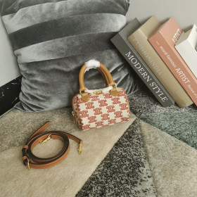 • CELINE-195112 셀린느 브라운/핑크 트리오페 자수 미니 보스턴 백