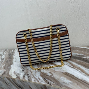 • CELINE-196252 셀린느 네이비&탄 텍스타일 스트라이프 파타팡스 스몰 숄더백