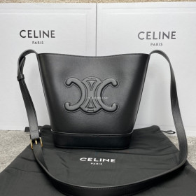 CELINE-198243 셀린느 브라운 카프스킨 스몰 버킷 백