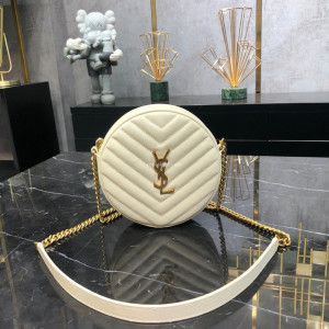 • SAINT LAURENT-610436 생 로랑 화이트 쉐브론 퀼티드 송아지 가죽 라운드 카메라백