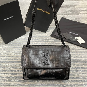 SAINT LAURENT-5489421 생 로랑 블랙 크로커다일 무늬 가죽 미디엄 니키 체인백 > 가방