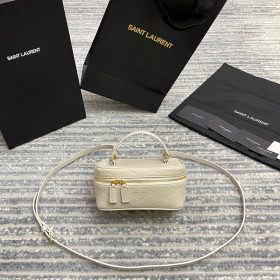 SAINT LAURENT-669560 생 로랑 화이트 퀼티드 램스킨 미니 생 로랑 베니티 케이스 > 가방