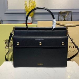 BURBERRY-80146241 버버리 블랙 송아지 가죽 스몰 포켓 디테일 레더 타이틀 백 요약정보 및 구매