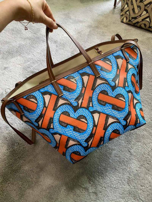 BURBERRY-80330231 버버리 브라이트 코발트 미니 모노그램 프린트 E-캔버스 비치 토트 > 가방