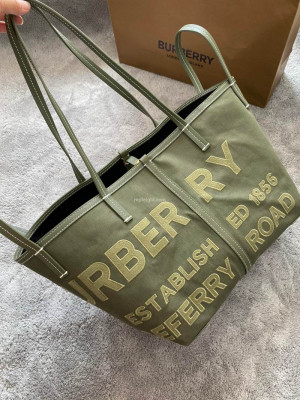 BURBERRY-80418011 버버리 카키 미니 호스페리 리넨 코튼 캔버스 비치 토트 > 가방