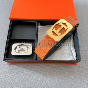 에르메스 20401000031-89 남성 벨트 더블 버클 & 리버서블 가죽 스트랩 38mm