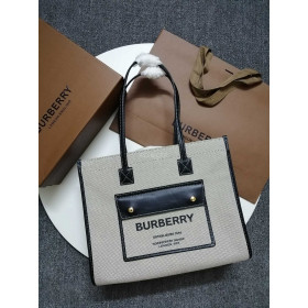 • BURBERRY-80441371 버버리 투톤 캔버스와 가죽 스몰 프레야 토트백
