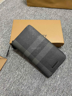 • BURBERRY- 80645861 버버리 차콜 체크 레더 지퍼라운드 지갑