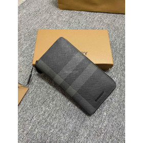 • BURBERRY- 80645861 버버리 차콜 체크 레더 지퍼라운드 지갑
