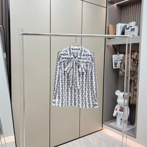 • BURBERRY - 버버리 80630261 체인 프린트 실크 크레이프 드 신 리본 블라우스