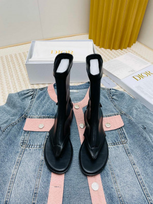 디올 - DIOR SPIRIT 통 샌들 블랙 레더-이펙트 스트레치 패브릭 > 신발