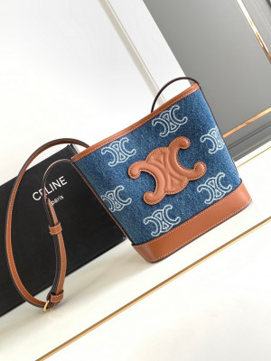 • 셀린느-10L432FDX.07AT 퀴르 트리옹프 미니 버킷 - 트리옹프 올 오버 자수 데님 & 카프스킨 네이비 / 탠