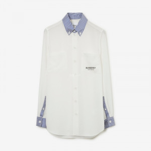 BURBERRY - 버버리 80713311 스트라이프 트리밍 실크 셔츠 > 의류