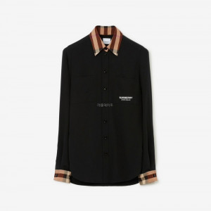BURBERRY - 버버리 80718811 체크 트리밍 실크 셔츠 > 의류