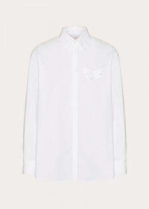 발렌티노 - VALENTINO 4V3ABR959VA_0BO COTTON POPLIN SHIRT WITH EMBROIDERED BUTTERFLY > 의류