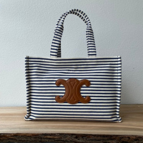 • CELINE-196923 셀린느 네이비&탄 라지 텍스타일 스트라이프 카바스 백