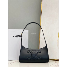 • CELINE-198153 셀린느 블랙 카프스킨 큐어 트리오페 숄더 백