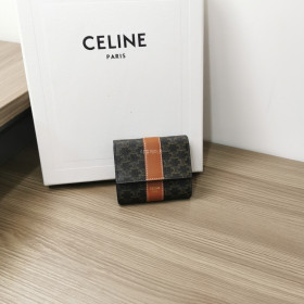 셀린느-10D572BZ9.04LU 스몰 3단 지갑 - 트리옹프 캔버스 & 램스킨 탠