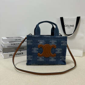 셀린느-199162FED.07AT 스몰 카바스 타이스 - 트리옹프 올 오버 자수 데님 & 카프스킨 네이비 / 탠