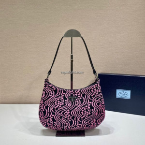 PRADA-1BC499 프라다 핑크 클레오 자카드 니트 가죽 숄더백 > 가방