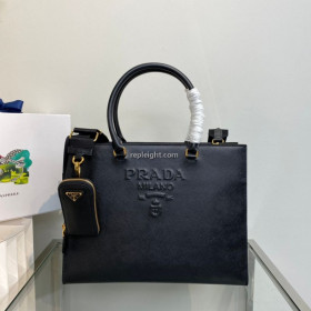 PRADA-1BA335 프라다 블랙 사피아노 가죽 대형 핸드백