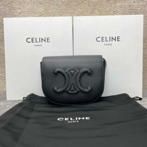 • CELINE-198153 셀린느 블랙 카프스킨 큐어 트리오페 숄더 백