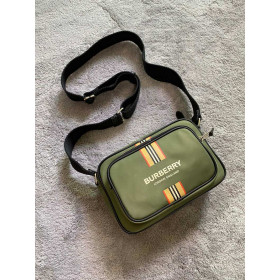 • BURBERRY-80357671 버버리 다크 올리브 그린 로고 아이콘 스트라이프 프린트 ECONYL® 크로스바디 백