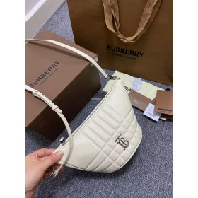 • BURBERRY-80443131 버버리 화이트 스몰 퀼팅 램스킨 크레센트 롤라 백