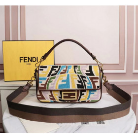 FENDI-8BR600 펜디 멀티 컬러 FF 피시아이 모티프 캔버스 미디엄 바게트 백