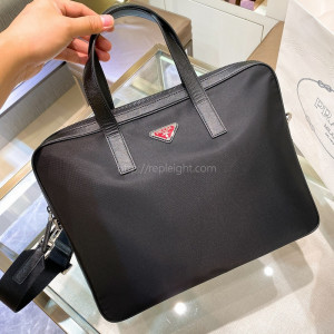 • PRADA- 2VE368 프라다 리나일론 및 사피아노 가죽 가죽 브리프케이스