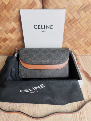 • CELINE-101592 셀린느 브라운 트리오페 스트랩 클러치
