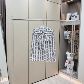 BURBERRY - 버버리 80630261 체인 프린트 실크 크레이프 드 신 리본 블라우스